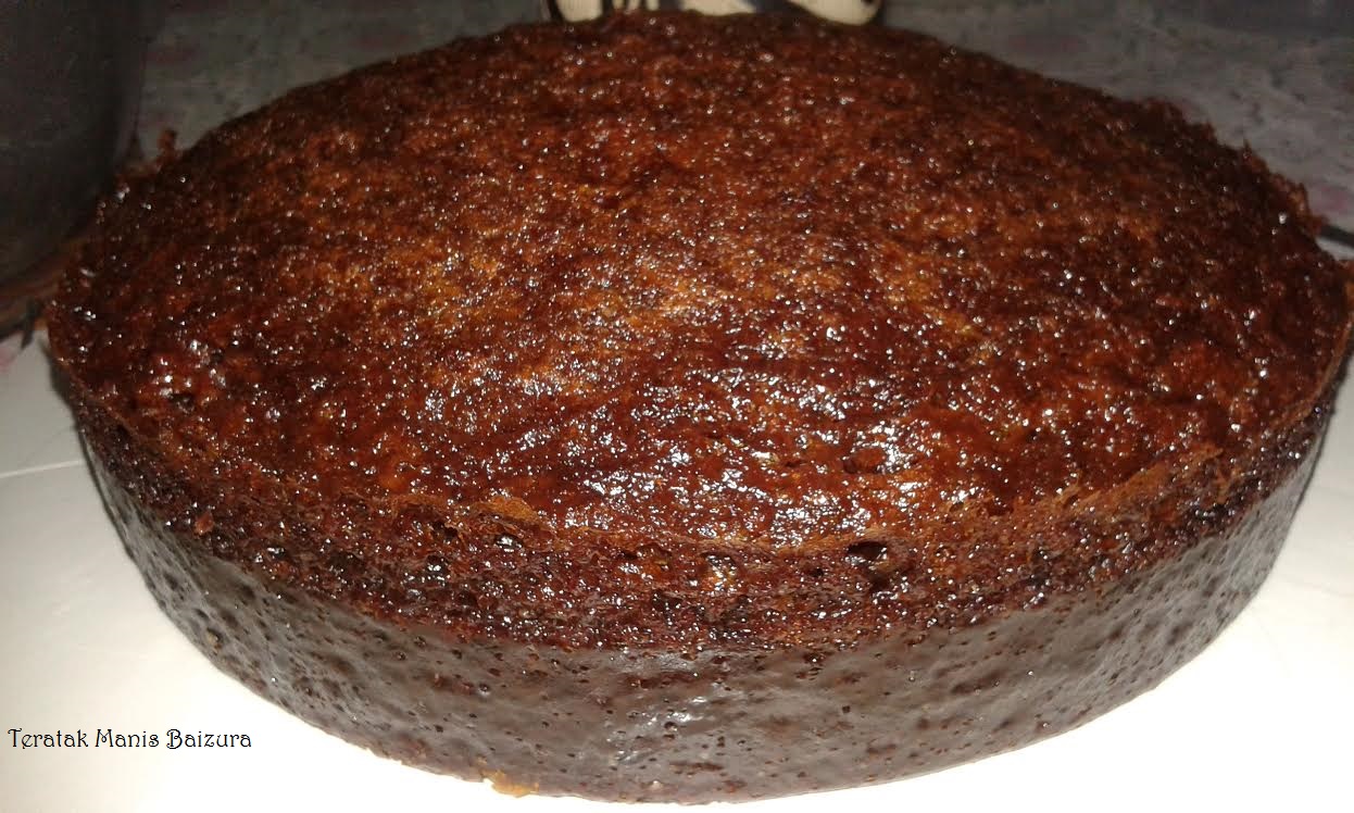 stick @ batang sudu @ lidi pun boleh bagi membentuk corak.( Bai tak pusingkan adunan kek ni sebab malas )